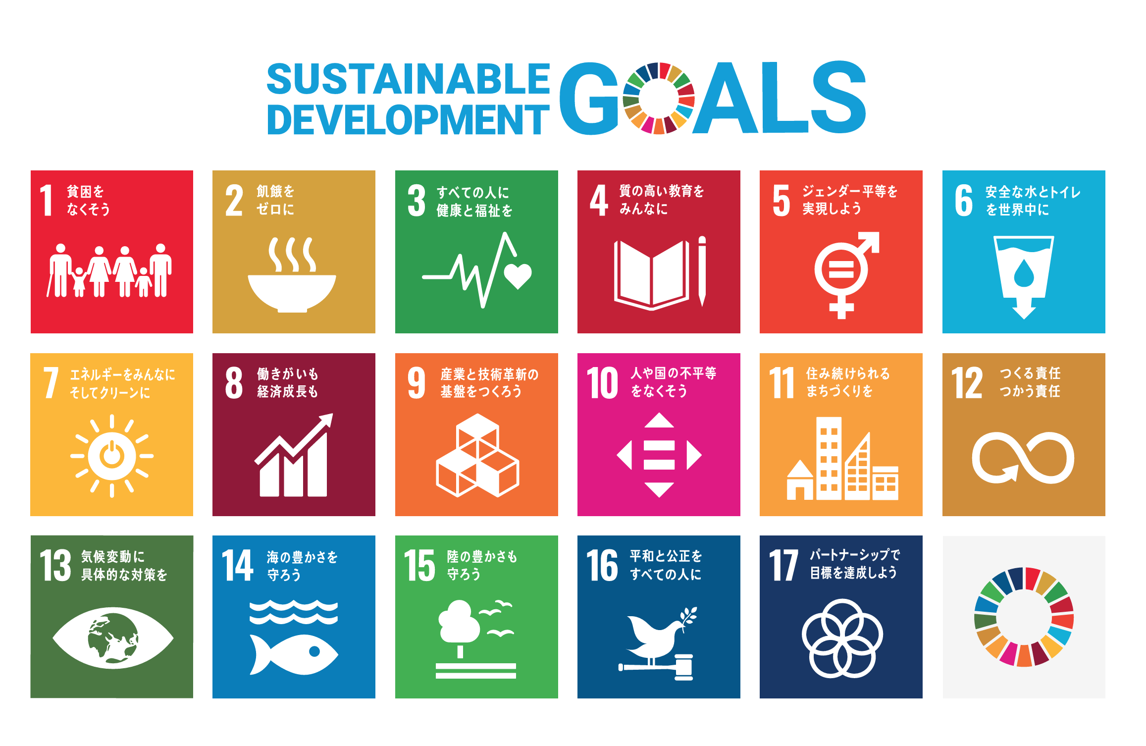 SDGsとは「Sustinable Development Goals」(持続可能な開発目標)の略称で、2015年9月に国連で採択された2030年までの国際目標。持続可能な社会の実現に向けて17のゴール(目標)と169項目のターゲット(達成基準)から構成されています。